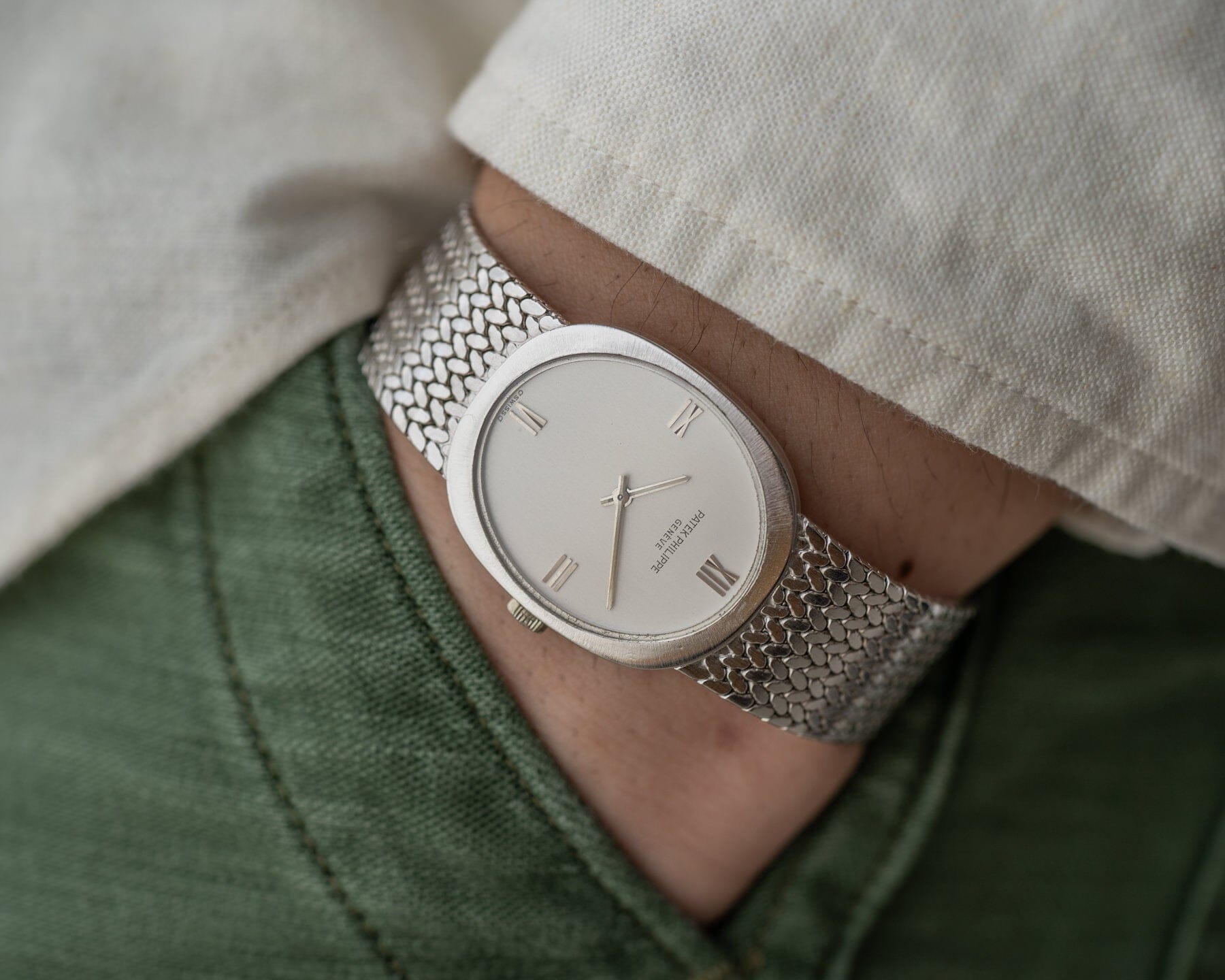 The Patek Philippe Golden Ellipse 3584 WG Silver Roman Dial with an integrated WG bracelet has arrived. The silver dial, which features 4-point applied Roman indexes, is a very rare design among Go...