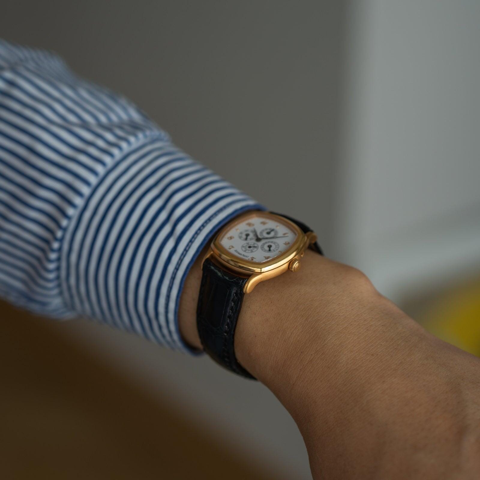 購入当時の箱、時計を収納していたレザーケース、保証書、真正証明書が付属しており、尾錠も純正の18K PGのDバックルとまさに完品と言えるコンディションです。