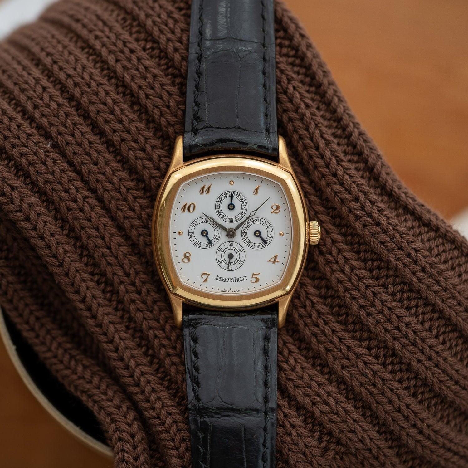 クッションケースにトリプルカレンダーという非常に珍しい時計です。