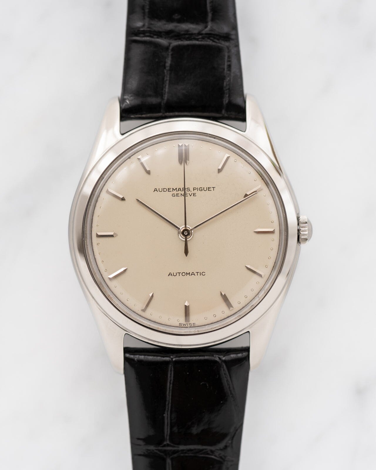 It is a vintage watch with many elements: it was produced in the 1950s, is made of steel, and is an automatic watch by Audemars Piguet.