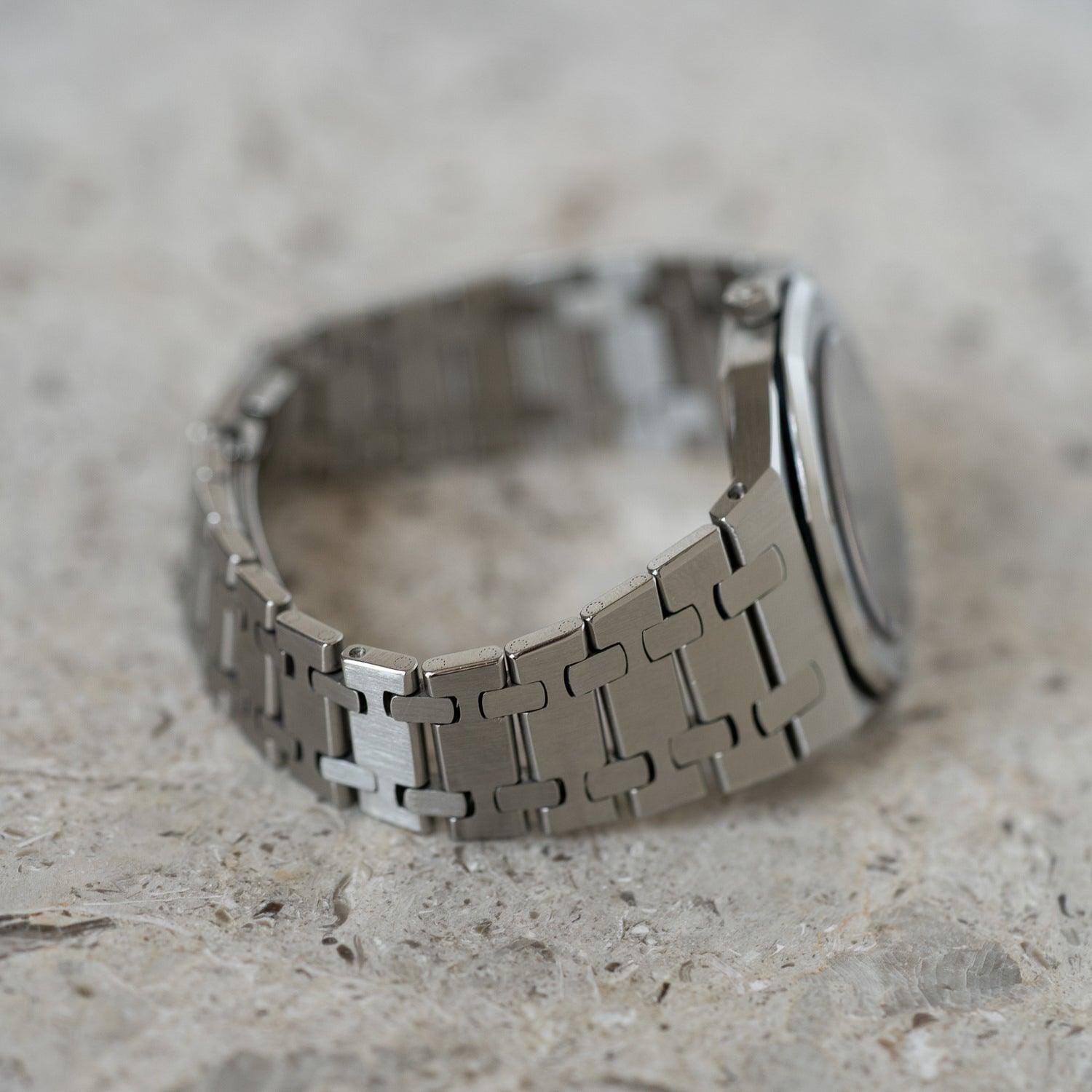 こちらのRef.4100STは初代ロイヤルオーク(Ref.5402)から遅れること数年、ミドルサイズのケースで発売されたモデルです。(後にRef.14100表記となったため、4100/14100は同じ時計です)
