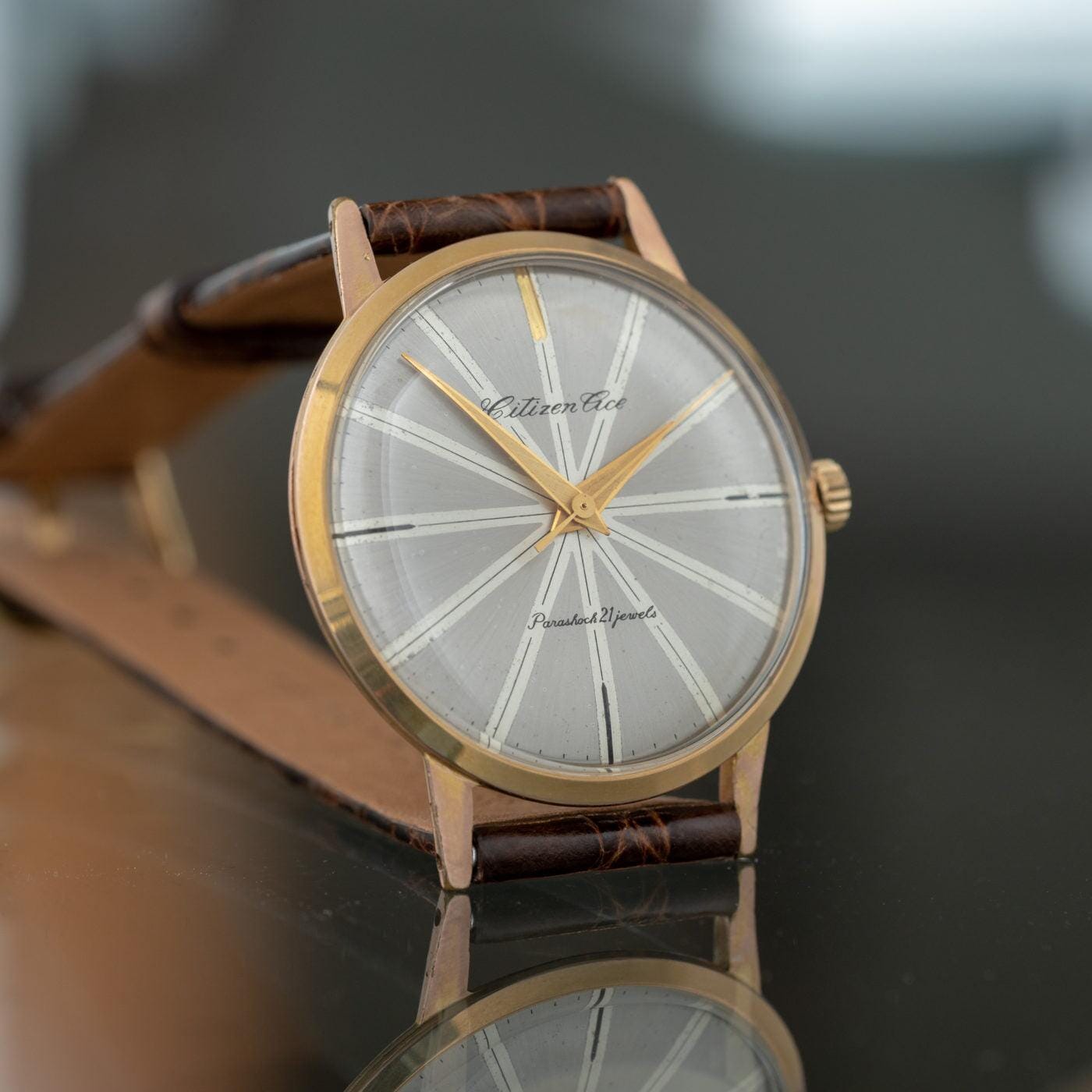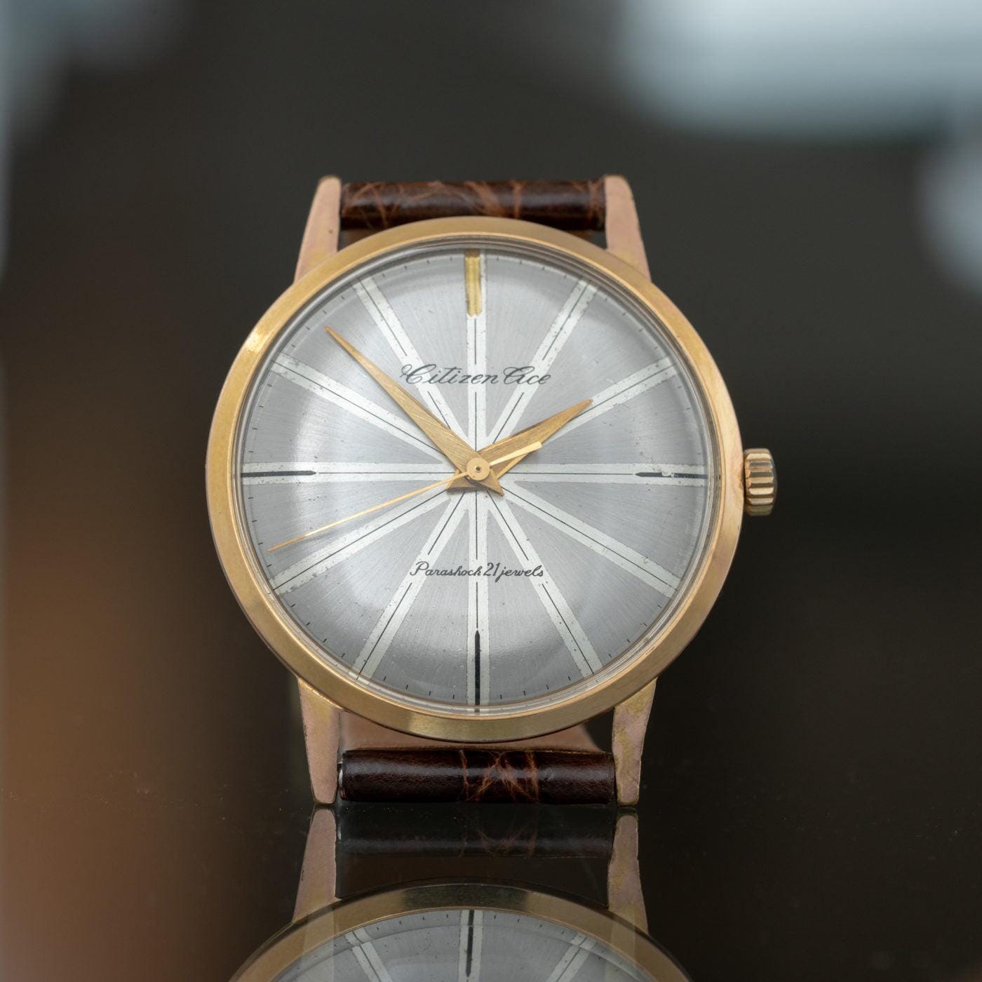 変わり文字盤と呼ばれる、激しいダイアルデザインが目に留まるシチズンのエースという時計です。1961年製。