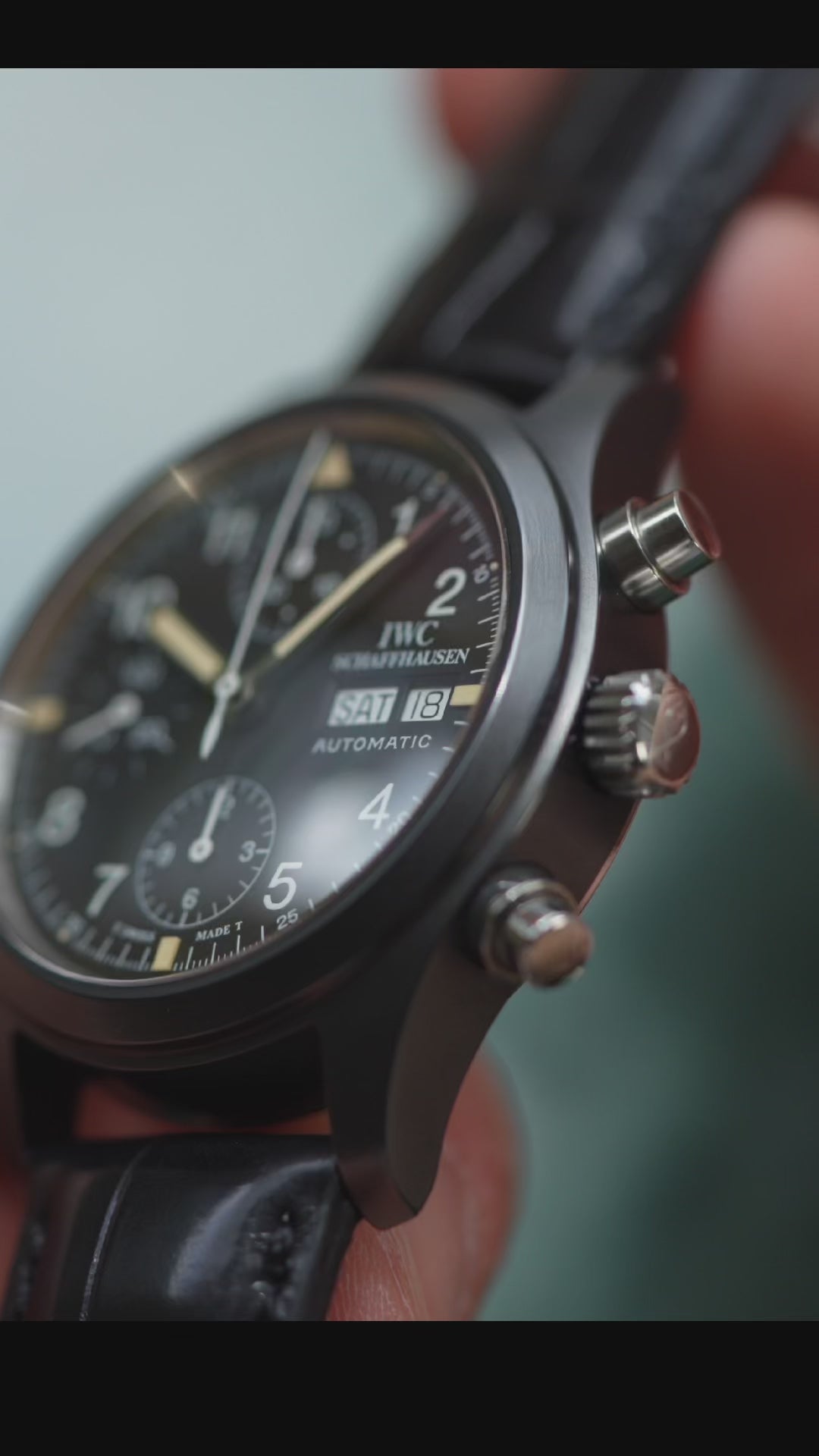 The reason for its rarity is that it was IWC's first pilot chronograph watch using black ceramic (zirconium oxide ceramic) as the case material.