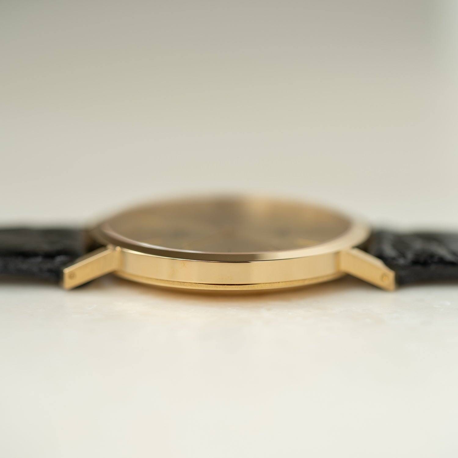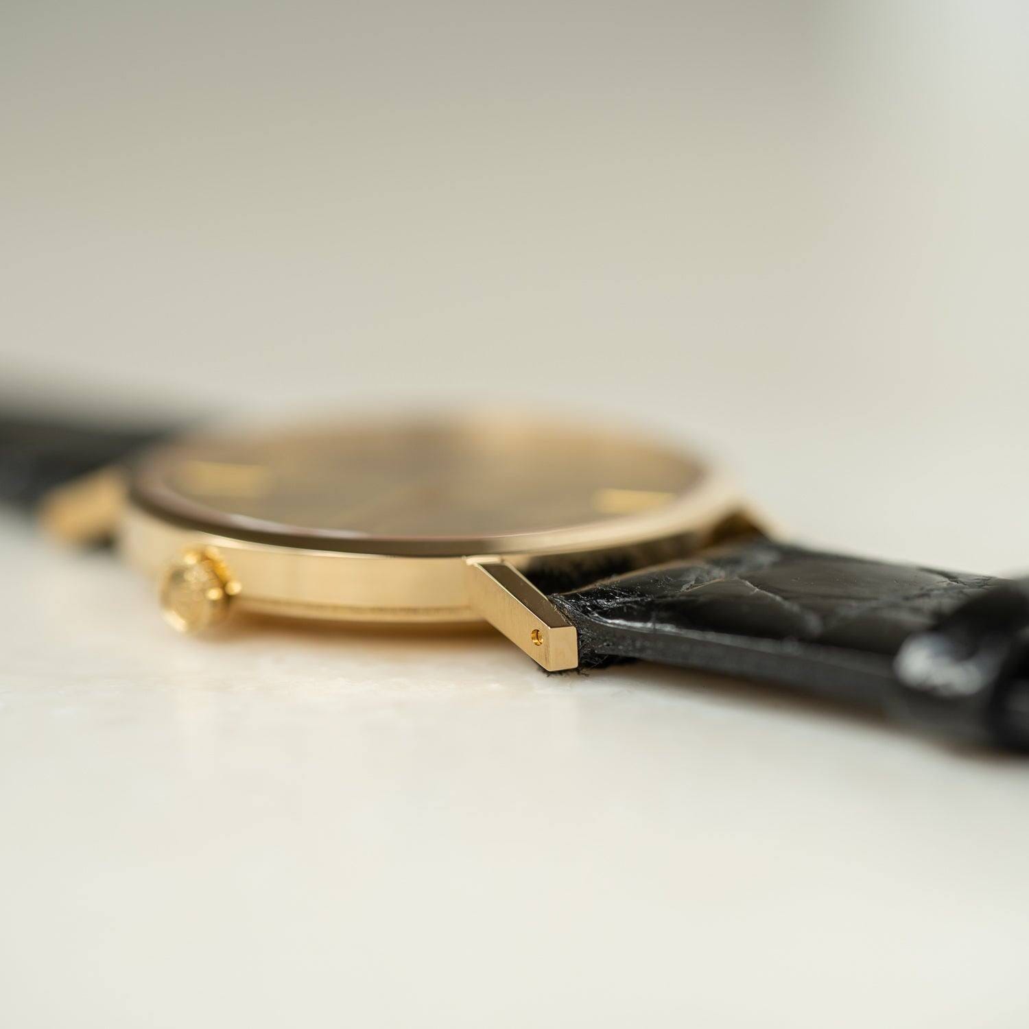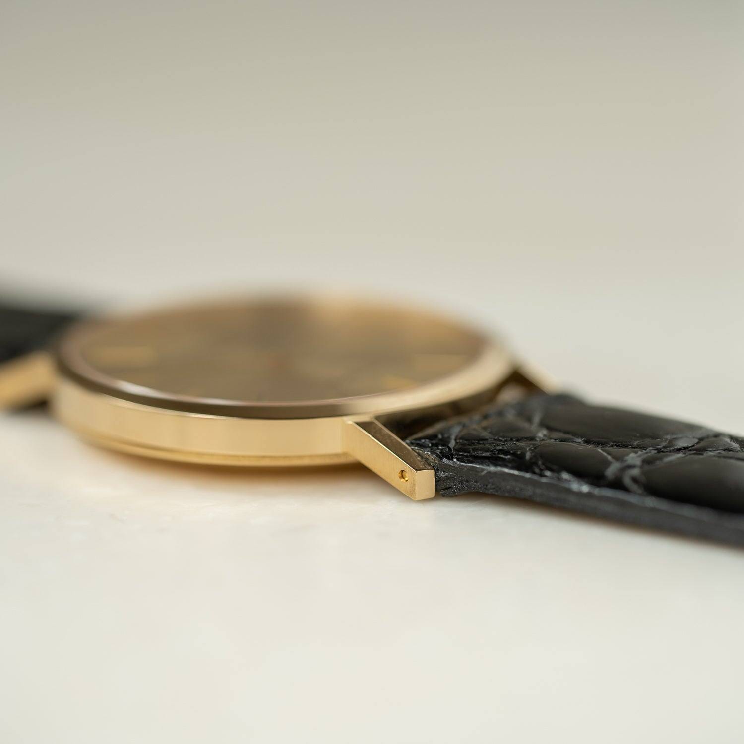 The dial is a champagne gold dial in the same colour as the case, with a sunray finish.