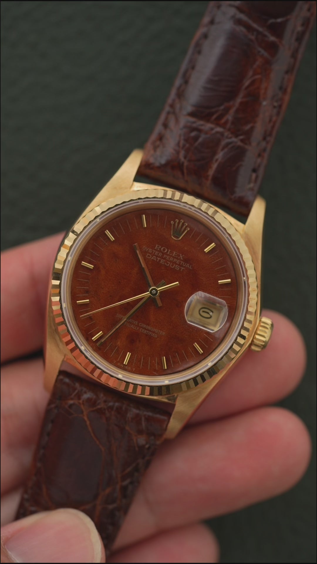 Dials that use natural materials exist on some Day-Date and Datejust watches, and those that use wood are collectively called "wood dials".