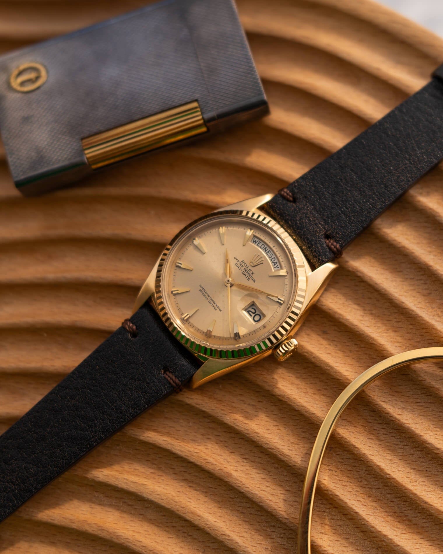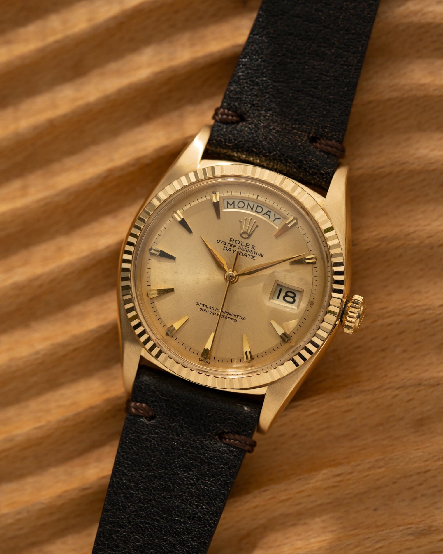 The Day-Date is Rolex's ultimate status watch. Introduced in 1956, it was the world's first waterproof self-winding chronometer wristwatch that displayed the date and day of the week in full spelling on the dial.