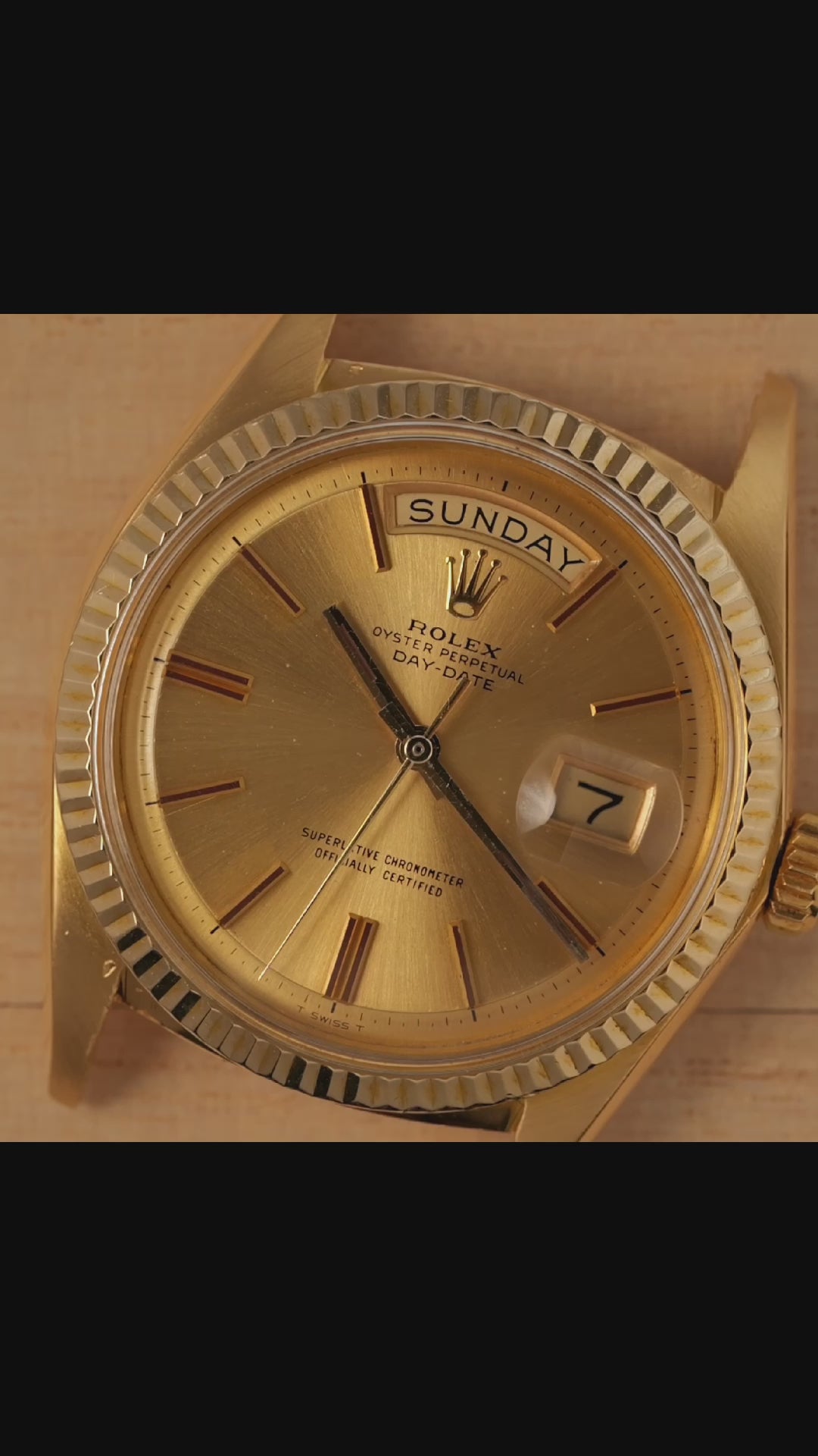 The Day-Date is Rolex's ultimate status watch. Introduced in 1956, it was the world's first waterproof self-winding chronometer wristwatch that displayed the date and day of the week in full spelling on the dial.