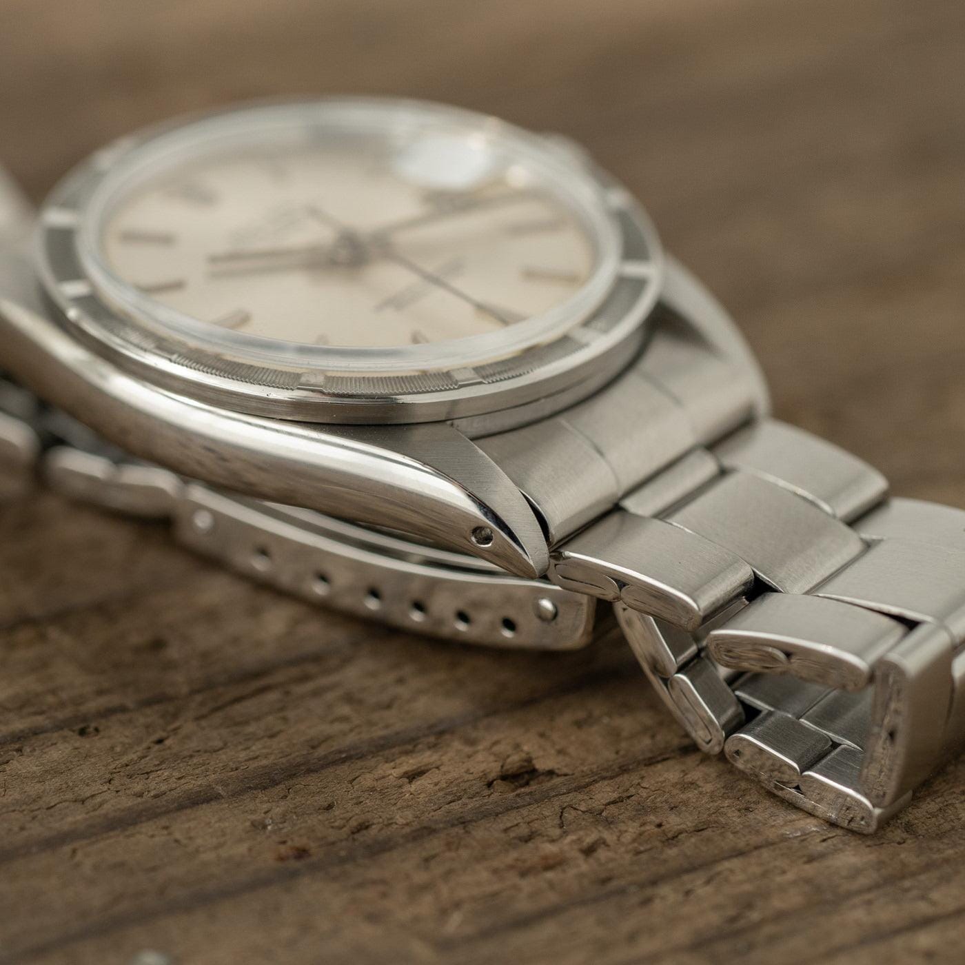 デイトジャストのフルーテッドベゼルと比べると幾分かスポーティな印象を受け、ドレッシーすぎないデザインが好きな方にはおすすめです。